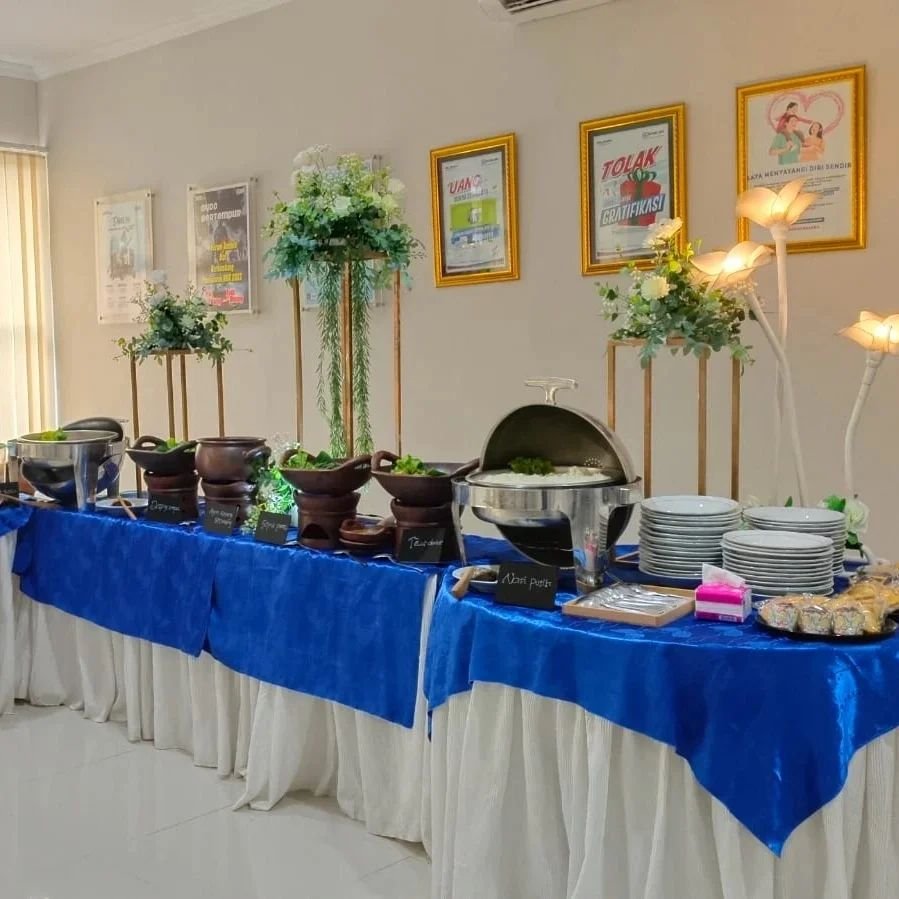 Selain pilihan menu, paket akad nikah juga dilengkapi dengan dekorasi meja yang menciptakan suasana romantis dan penuh makna. Tim dekorasi Jagarasa Catering akan bekerja sama dengan pasangan untuk menyesuaikan tema dan warna dekorasi sesuai dengan keinginan. Dengan memadukan estetika yang pas dan hidangan yang nikmat, momen akad nikah akan menjadi lebih berkesan.